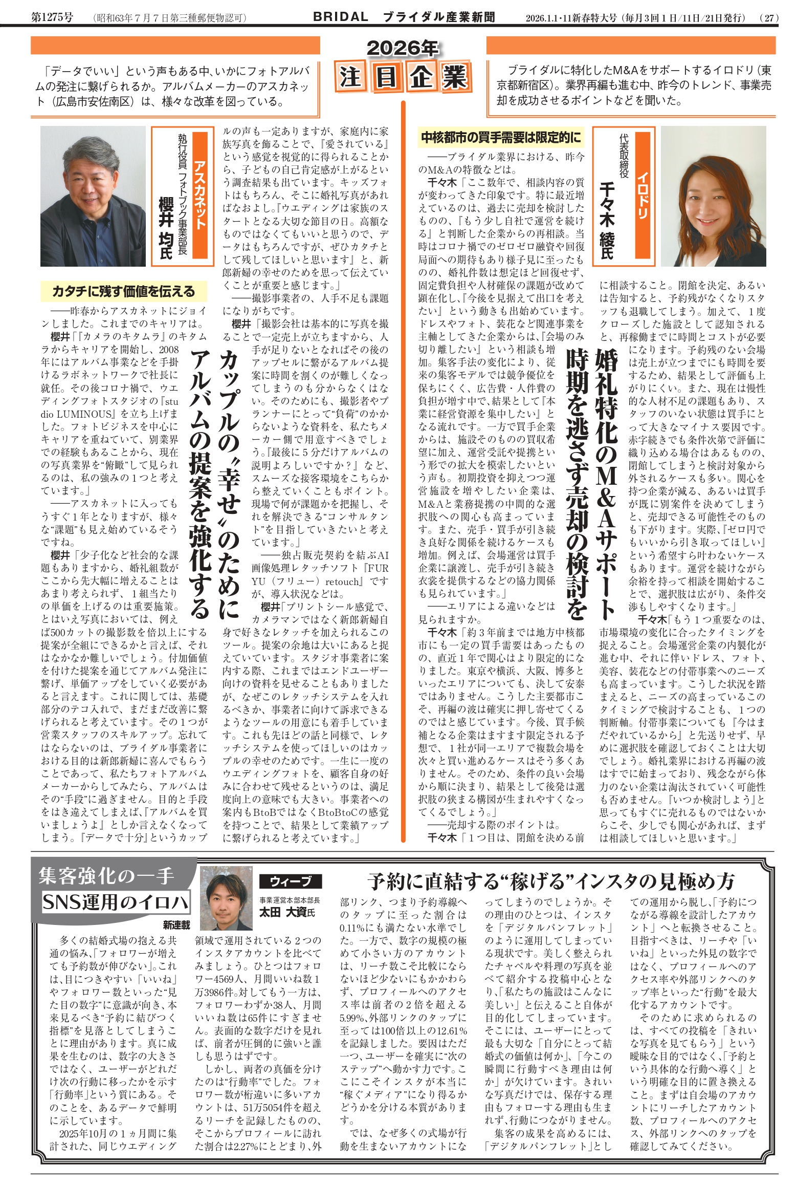 2026年1月1・11日新春特大号『ブライダル産業新聞』に掲載されました。